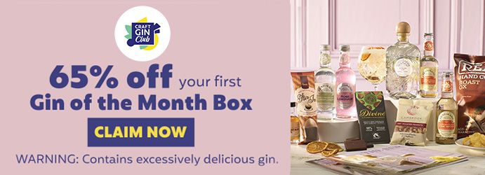 Grab a full bottle of gin along with all the glitzy extras (mixers, snacks and more), using our exclusive 65% off offer on your very first gin of the month box.