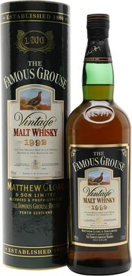 100cl / 40% - A rare 12-year-old blended malt from The Famous Grouse, aged in a combination of sherry butts and hogsheads. The nose offers rich notes of smoke, dried fruits and milk chocolate, followed by sweet notes of raisins and orange zest on the palate. This 1992 Vintage Malt Whisky was bottled in 2004 by Edrington, which acquired the Famous Grouse brand in 1999. These popular blended malts included malt whiskies from Macallan and Highland Park distilleries and were released exclusively for the trave